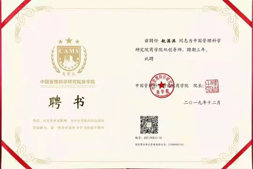 中国管理科学研究院商学院聘登尼特赵满浓为双创导师