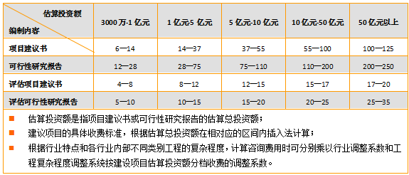 2、收费标准:2-168万元人民币,根据项目难易程度而定。政府规定的收费标准如下:根据国家发改委规定《建设项目前期工作咨询收费暂行规定》,收费标准如下: