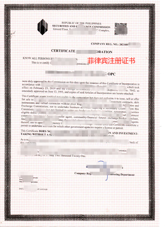 五、菲律宾注册证书是什么样子的?