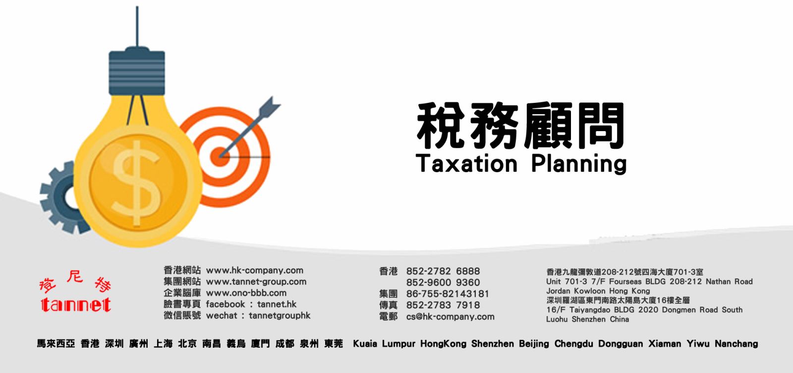 如有任何注册香港公司审计报税的问题,欢迎随时联络我们。香港852-27826888, 852-27837688深圳 86-755-82143181或访问香港网站 www.hk-company.com 集团总网站 www.tannet-group.com .谢谢!